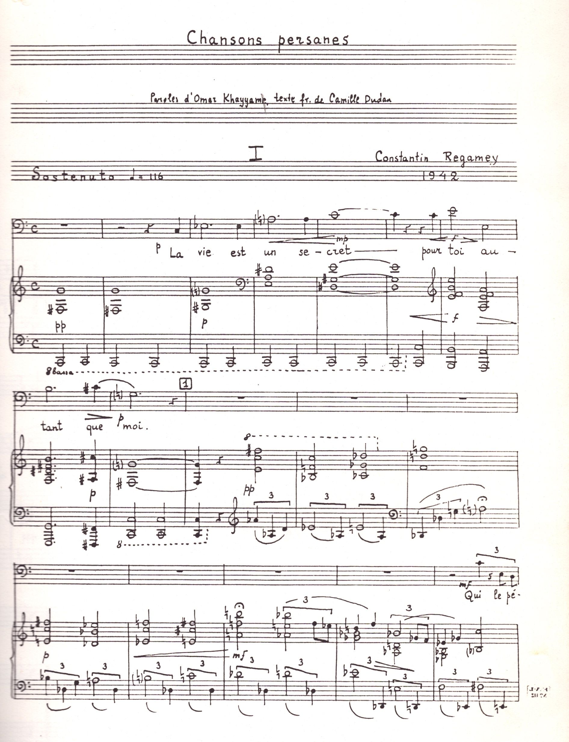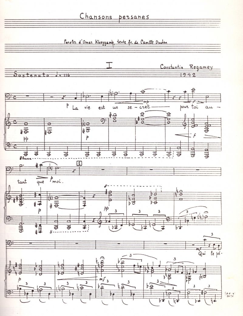 Konstanty Regamey był kompozytorem, ale różniącym się od wszystkim, bo był kompozytorem autodydaktą, niemniej jego dzieła są równoważne z najwybitniejszymi dokonaniami wiodących kompozytorów lat 50-ych i 60-ych w muzyce europejskiej. Jest przede wszystkim pionierem w dziedzinie dodekafonii, a na pewno jednym z pierwszych zaraz po kręgu lwowskim, który zbliżył się do dodekafonii poprzez pełną chromatyzację materiału dźwiękowego, podobnie jak Schönberg. Tymi pierwszymi próbami były Pieśni perskie i Kwintet, w których przejawia się konstruktywizm dodekafoniczny, ubrany w wirtuozowska fakturę instrumentalną, a ostatecznym rezultatem jest neoromantyczna ekspresja. Zdaniem Regameya zastosowanie procedur klasycznej dodekafonii jest użyciem określonej techniki kompozytorskiej, ale nie musi determinować jeszcze stylu utworu. Stanowi zaledwie przyczynek do stworzenia nowego języka muzycznego. W konsekwencji Regamey stosując technikę dwunastotonową komponował w różnych stylach (np. w Kwintecie w stylu Brahmsa, w Autoportrecie zbliżył się do neoklasycyzmu, w nieukończonej operze Don Robott wprowadził totalną serializację wszystkich warstw dzieła, również elementów wizualnych, światła, ruchu śpiewaków na scenie). Początkowe dążenia kompozytora do wprowadzenia, a następnie rozwinięcia dodekafonii i wykreowania indywidualnego stylu muzycznego sprzeczne było z kierunkiem rozwoju dodekafonii europejskiej, która znalazła kres w osiągnięciu serializmu. Regamey, przeciwnie, dążył do osiągnięcia muzyki o oryginalnym wyrazie, muzyki różnorodnej i barwnej, silnie ekspresyjnej.