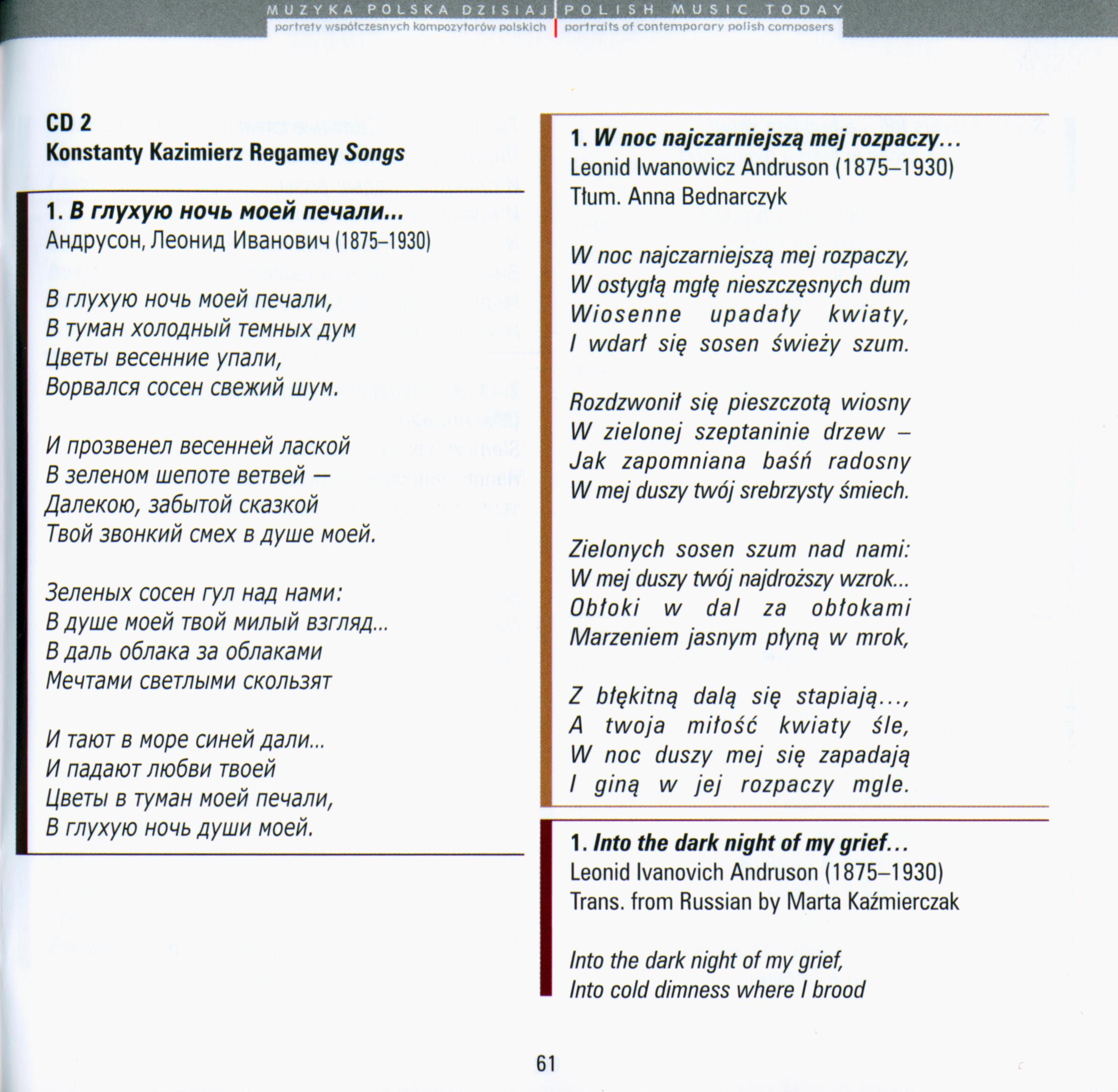 W noc najczarniejszą mej rozpaczy...[В глухую ночь моей печали]: